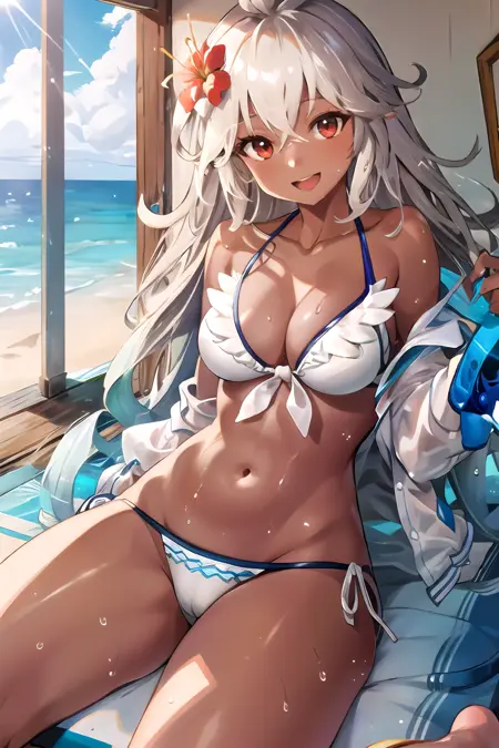 zooey_summer, swimsuit, hair flower, bikini, frilled bikini