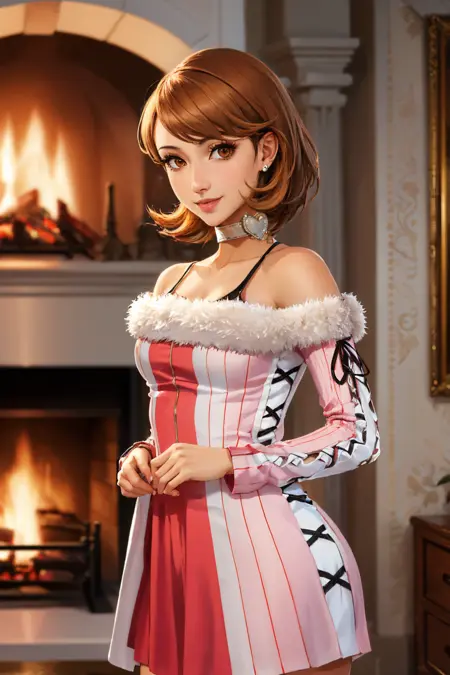 Persona 4 Arena: takebaarena, 粉色紧身衣, 白色手套, 项圈, 事业线