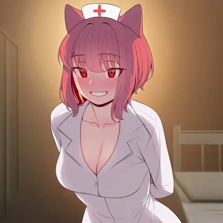 (( lora:cathy\_(hospitalized\_life\_in\_another\_world):1 , cathy_(hospitalized_life_in_another_world),细腰,宽臀,美丽肌肤,锐利的红眼睛,清澈的眼睛,明亮的瞳孔,美丽的双眼,美丽的红色长发,美丽的中等波波头,刘海,中等大小胸部,娇小女性,自然美,超美女性,迷人女性,超级性感女性,欲望的身体,带有诱惑性淫秽身材的性感女性,性感身材,丰满身材,性感美人,无穿孔,无 piercing,红色猫耳,可爱, ))