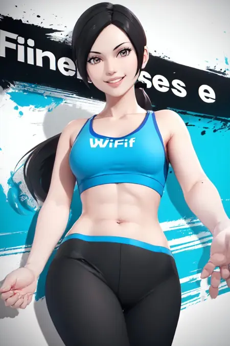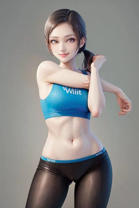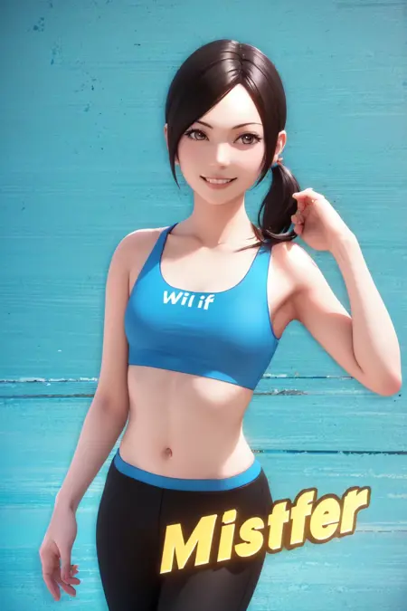 触发词 + 外貌特征: 健身环大冒险教练,有色皮肤,白皮肤,马尾辫