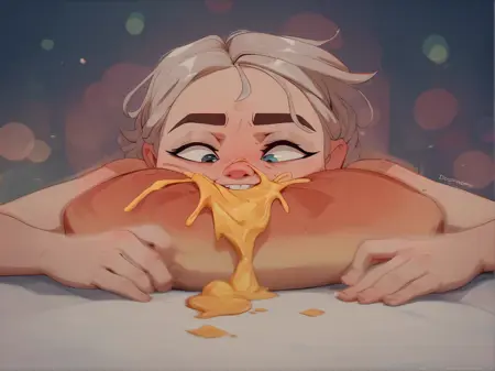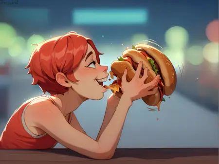 ホットドッグが描かれた看板を作ろうとしていたが、あまり良いホットドッグが得られなかった。だから、今ここで、ポニーにホットドッグを作らせている。単に一枚描けばよかったが、それでは面白くないだろう?