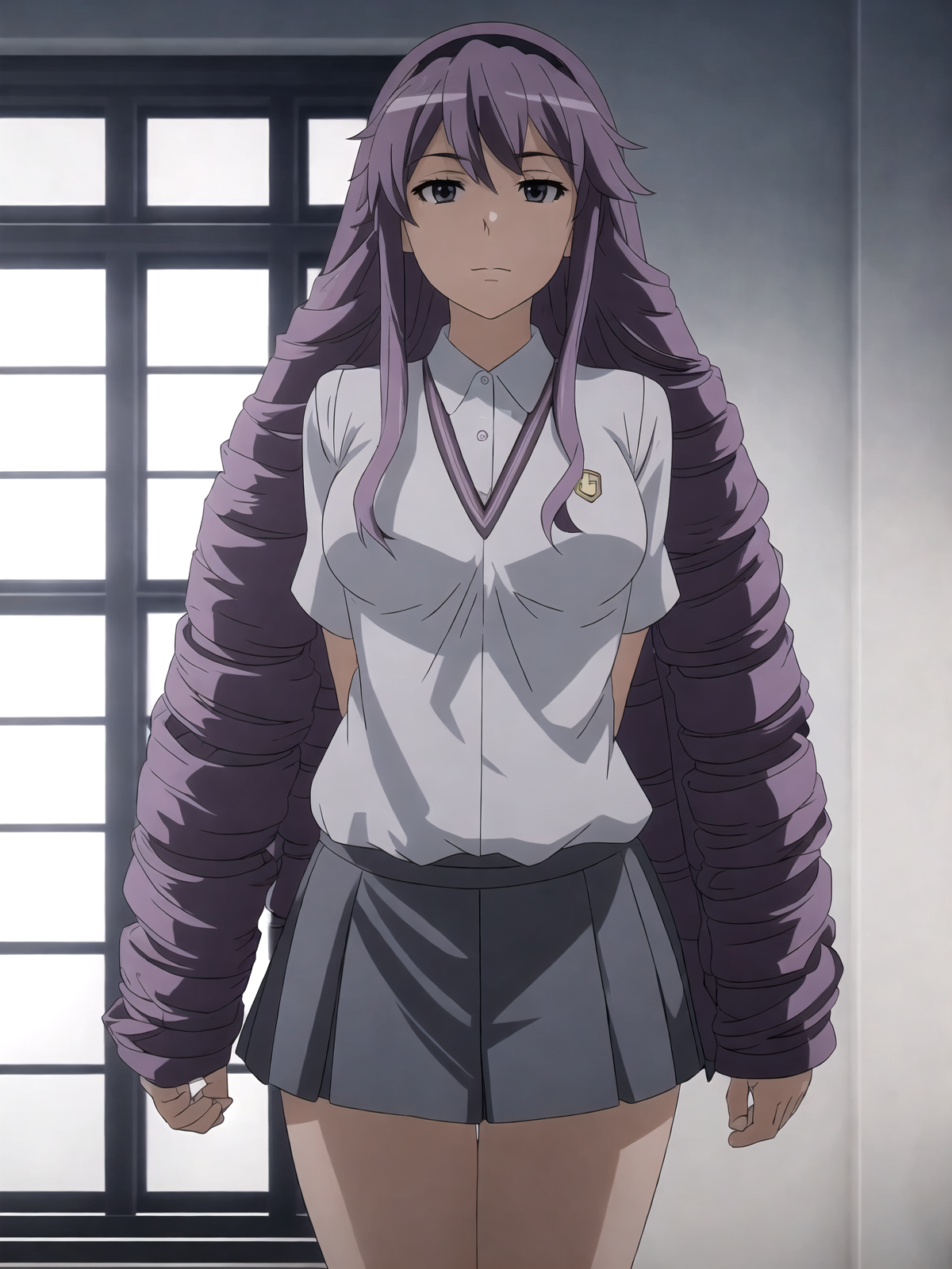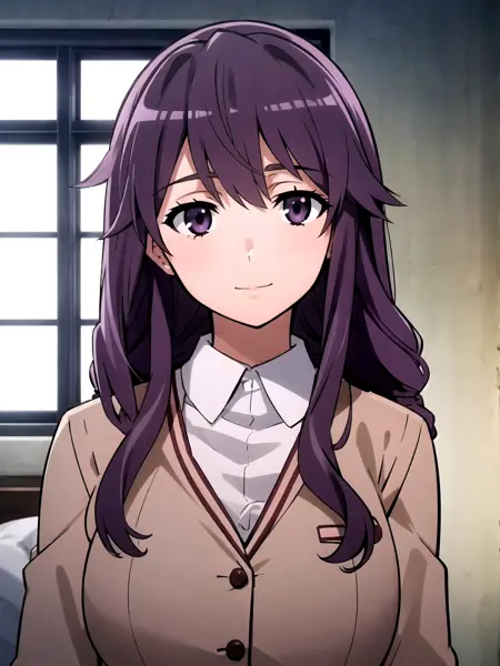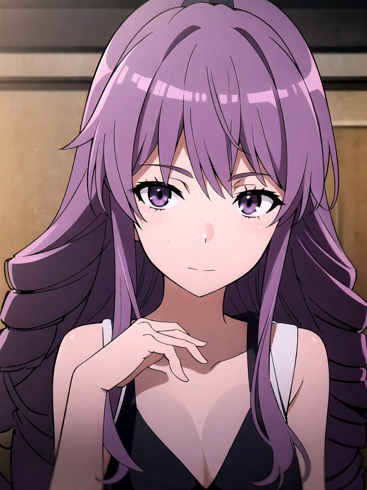 I recommended for use next promts: lora:Junko\_Hokaze\_V4:0.7, swimsuit, school uniform, purple hair, medium or large breasts and etc