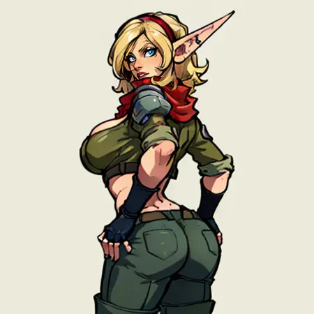 Tess, blonde hair, blue eyes, pointy ears,