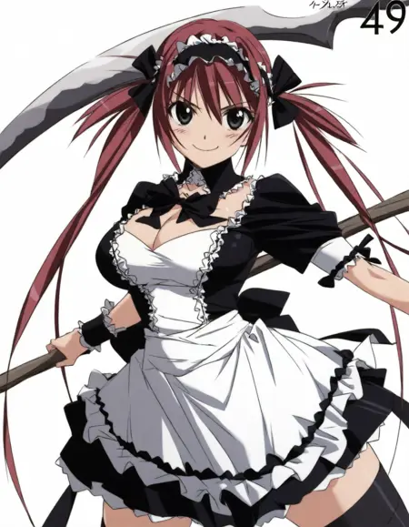 airi, cleavage, wrist cuffs, thighhighs, scythe