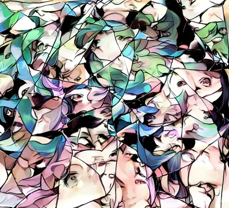 镜子破碎(面部内部)在 AI 绘画中被定义为“错误、更差、问题”,因此难以实现理想的破碎效果。