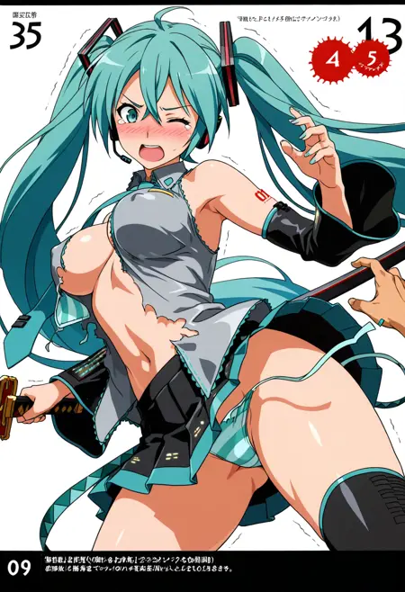 - 단독으로 복장이 찢어지는 것을 학습했습니다. 복장이 찢어지지 않는다면, 프롬프트에서 캐릭터의 의상 지정을 삭제하세요.
