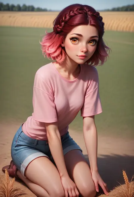 我自创角色的LoRA模型——Ruby Gamroy:一位发尾为粉色的红发女孩