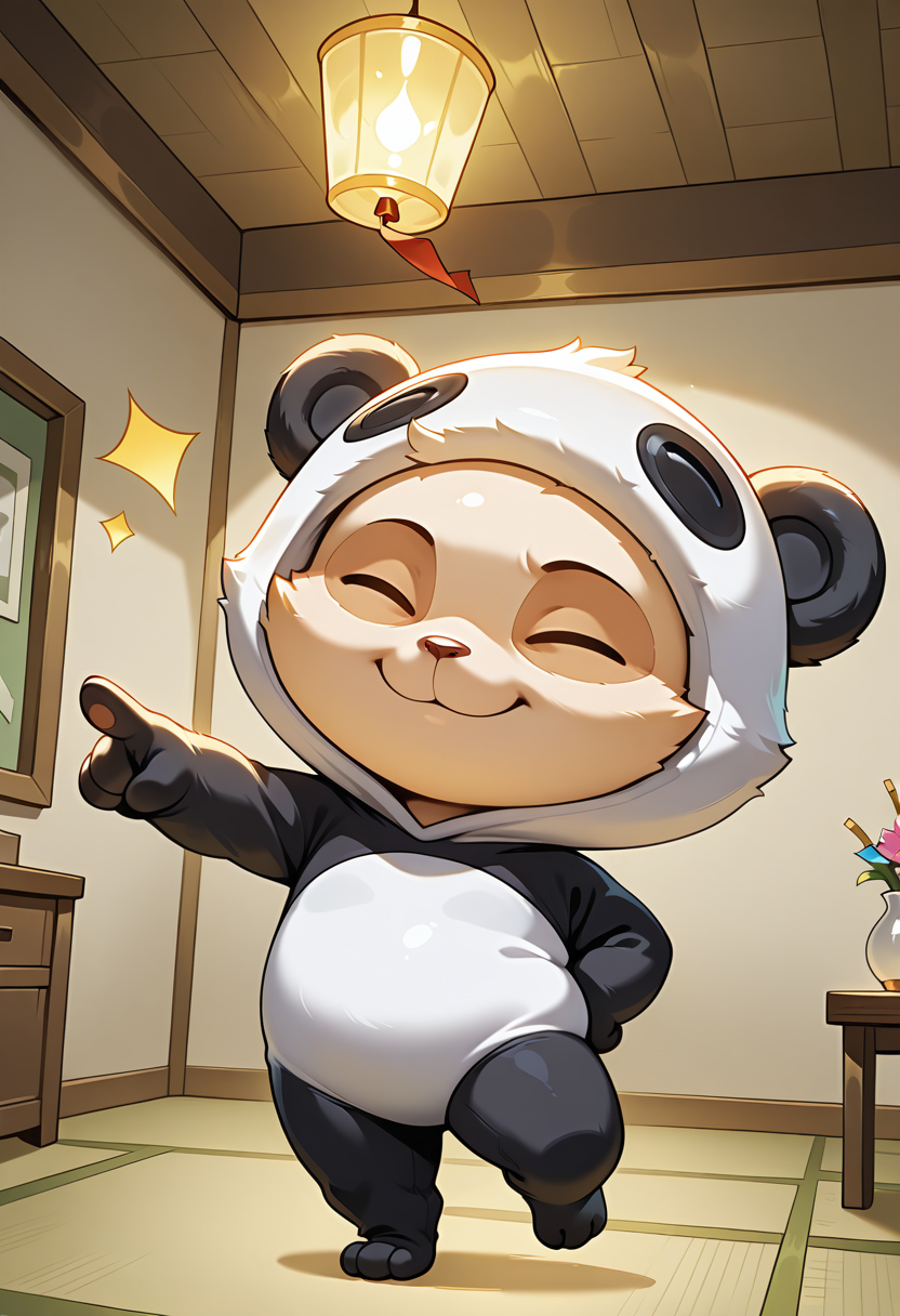 • panda kigurumi, panda_costume, panda cosplay, (no_fur_neck), ((no_fur_trim)),
