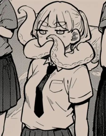 Cute octopus girl is cute. Trained on the precious few manga crops of questionable quality I could assemble for this character, so the model may be kinda limited. Tbh, I'm amazed it works at all.