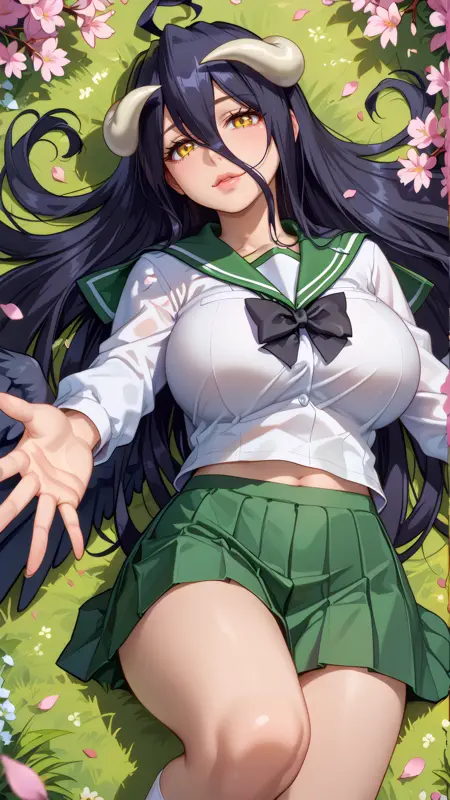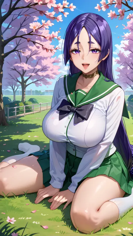 hotd_school_uniform, school uniform, serafuku, green skirt, pleated skirt, black bowtie,