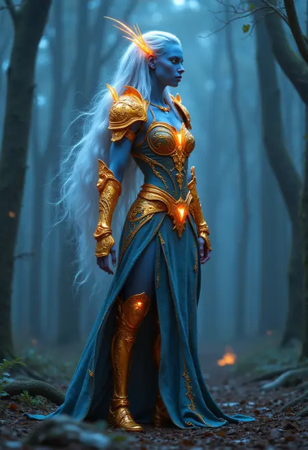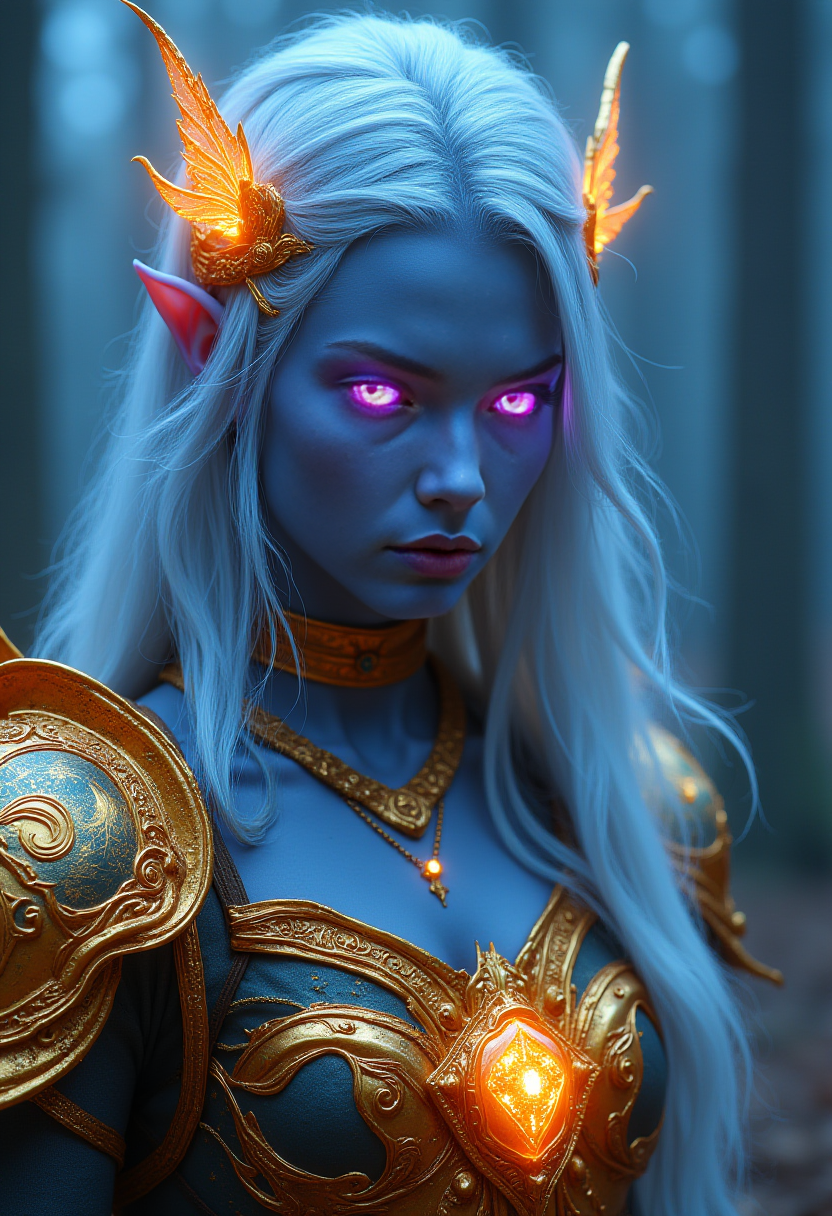 DQuarkeen is a required trigger. You can check the other triggers like : red eyes, full body, white hair, boots, horns, pointy ears, armor, glowing, colored skin, gauntlets, glowing eyes and blue skin in the LoRA. Its up to your imagination to create image based on the capability of this LoRA.