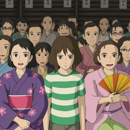 『千と千尋の神隠し』から50枚 — 追加で「Scene from 'Spirited Away' film.」を前置