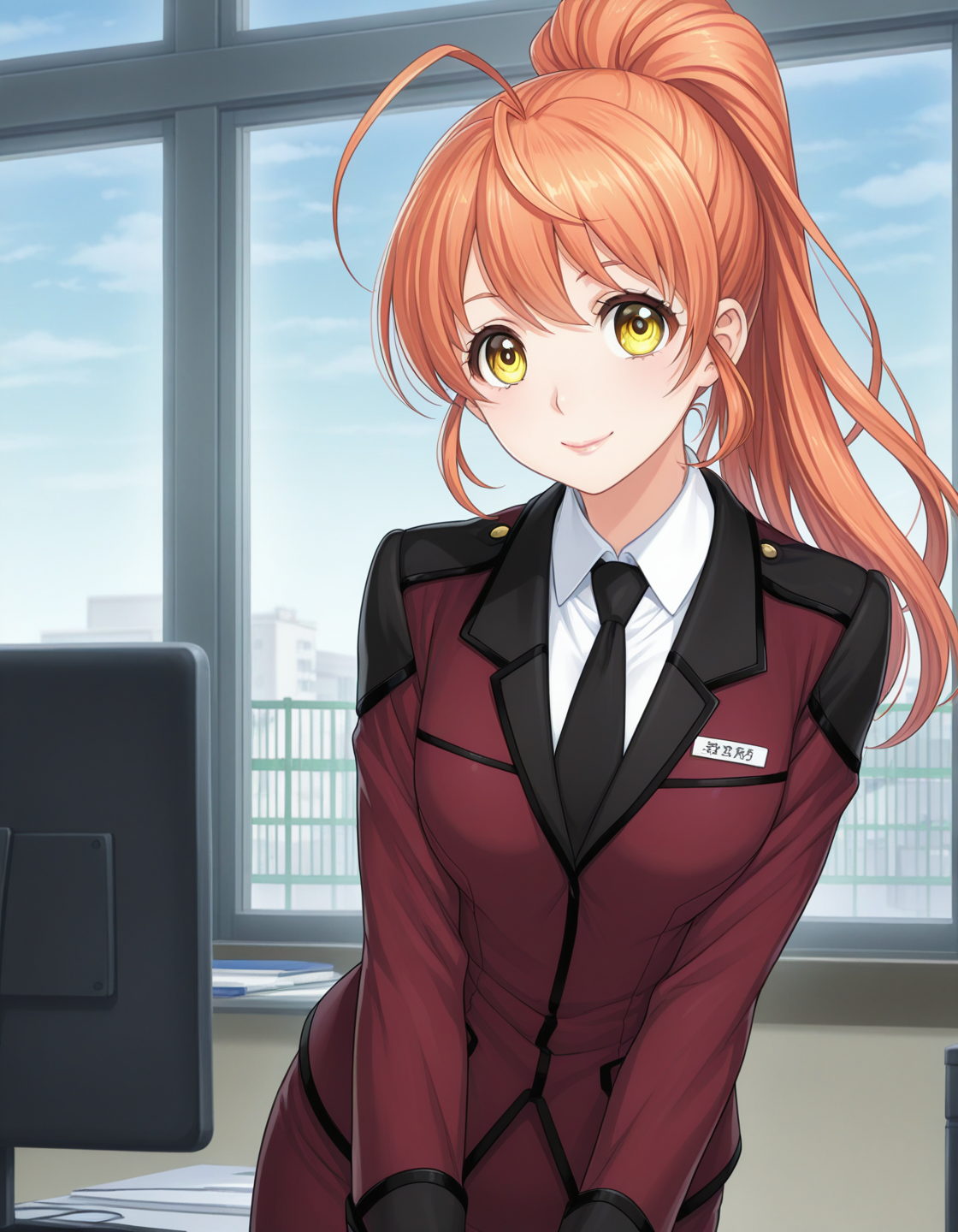 yamabuki rin, orange hair, long hair, ponytail, ahoge