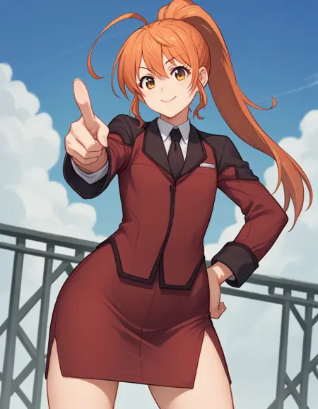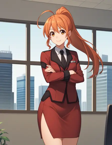 military uniform, red clothing, black necktie, pencil skirt, side slit