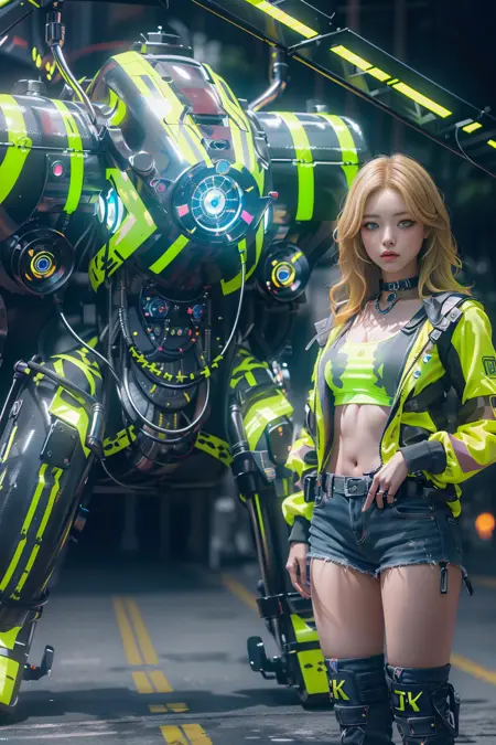 **注意:这些图是需要使用tile进行构图的,并不能直接出现机器人, 该lora用于为材质添加镭射霓虹特效,简要步骤请看下面!!!(**如果你需要机甲风构图,请到我主页下载机甲lora!)