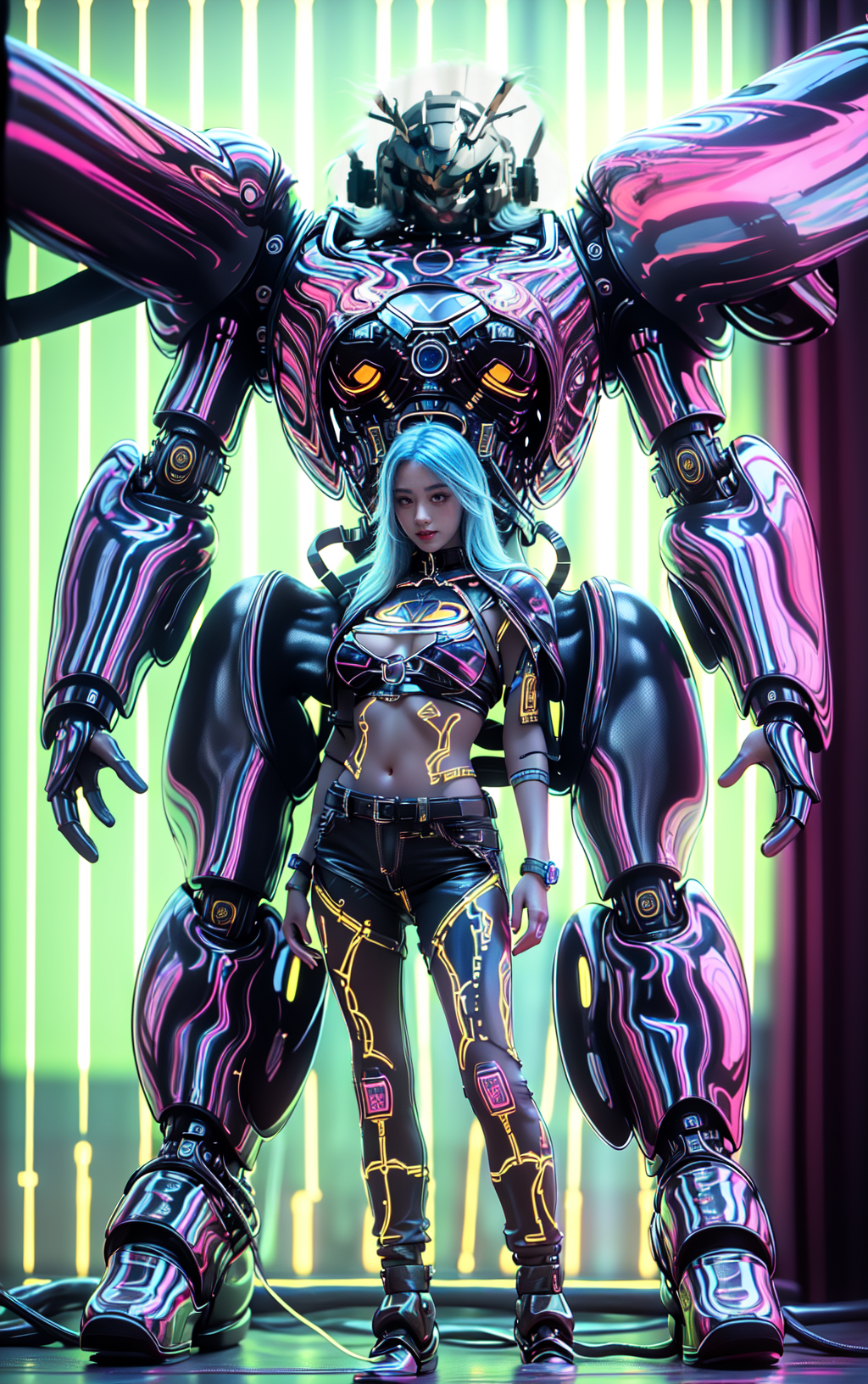 Note: These images require the use of tiles for composition and cannot directly appear as robots. This Lora is used to add laser neon effects to the material,Please take a brief look below!!!