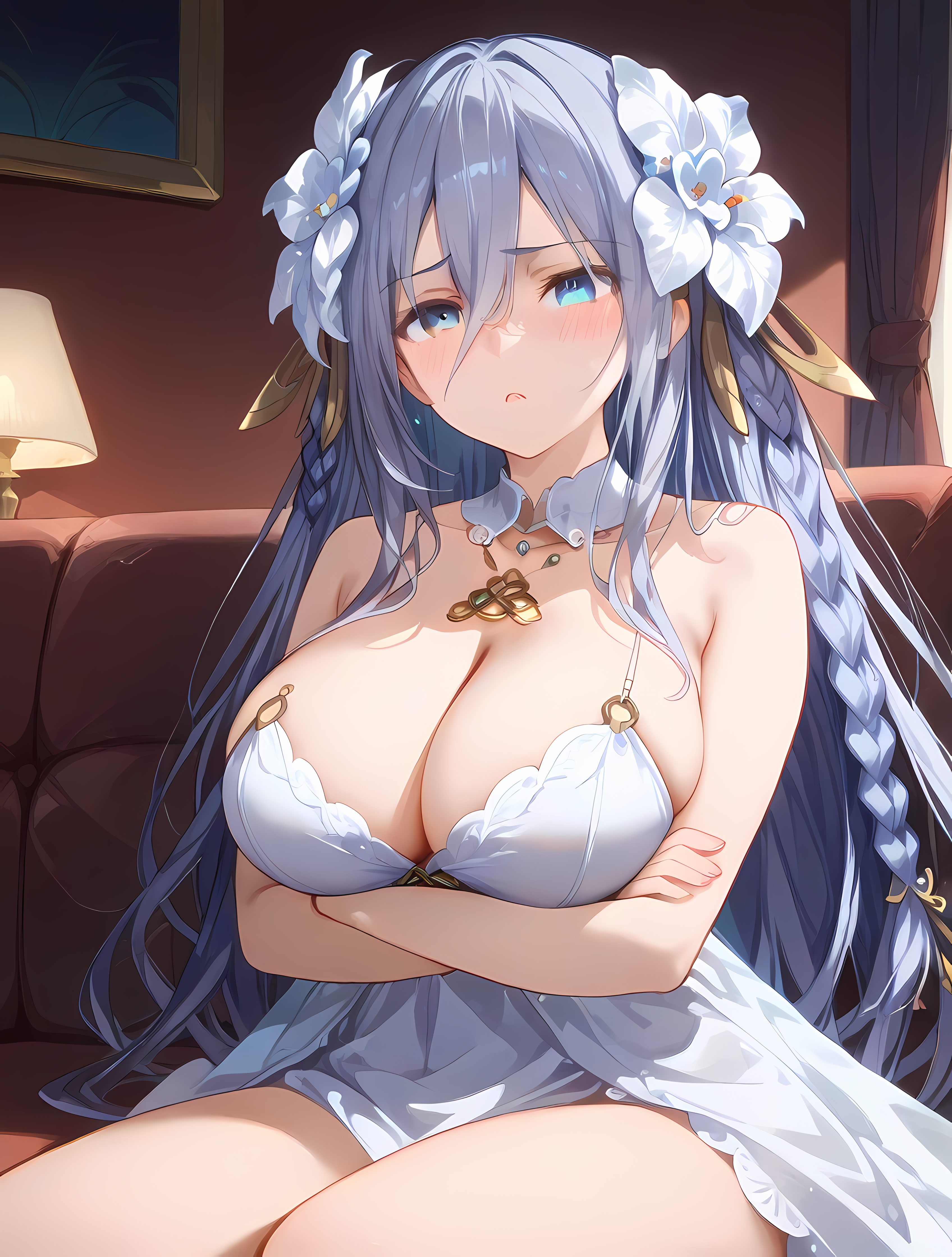 Takamiya, 1girl, grey hair,