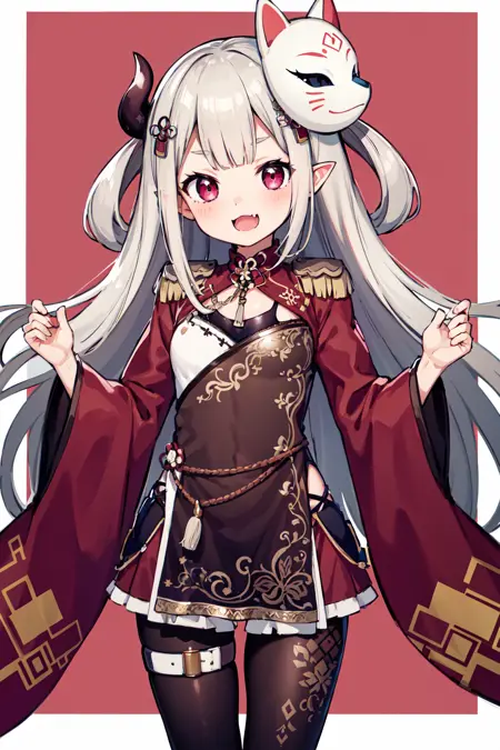 outfit1hmnaa, 发饰, 头戴面具, 长袖, 宽袖, 披肩, 黑色长袜, 大腿绑带, 铃铛