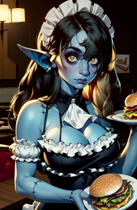 ZoMaid,尖耳朵,缝线,双马尾,金发,- 黄色眼睛,