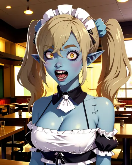 ZoMaid,尖耳朵,缝线,双马尾,金发,- 黄色眼睛,