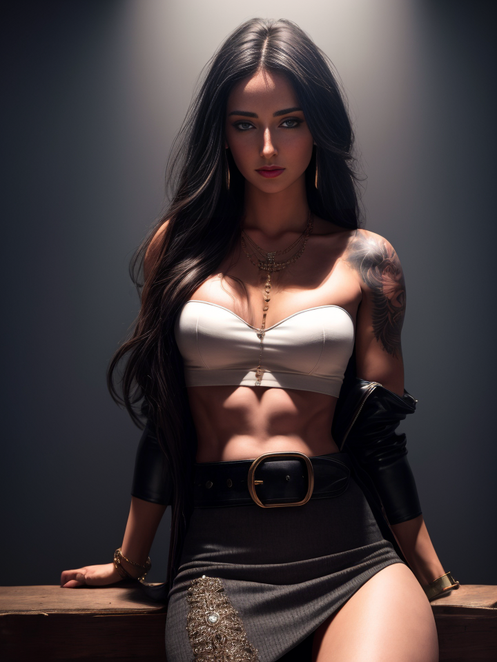 | 训练词汇 | 1girl, long hair, black hair, blue eyes, breasts, tattoo, nail polish, bracelet, necklace, , crop top, pencil skirt, jewelry, bare shoulders, midriff, strapless, detached sleeves, tube top, navel, boots, socks, , jeans, belt, sports bra, , black dress, black jacket, from behind, standing, sitting, tank top, black pants, leather pants, socks 已复制! |