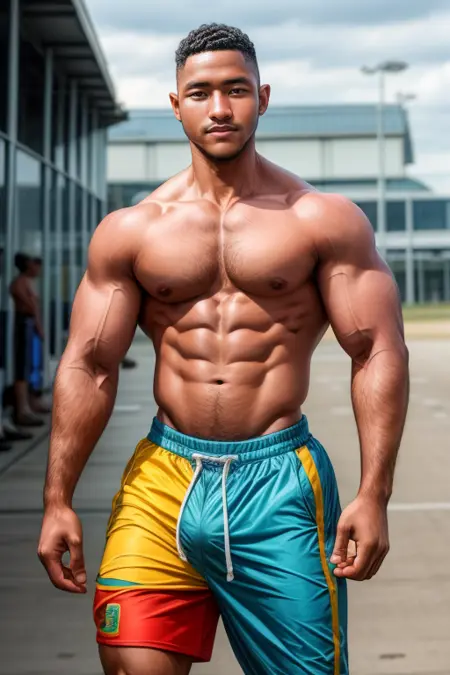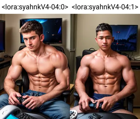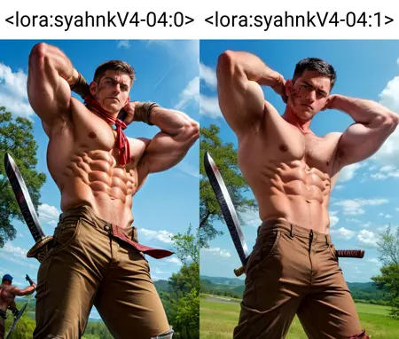 positive prompt - masterpiece, best quality, highres, realistic, handsome, photogenic, masculine, (big muscles),lora:syahnkV4-08:0.5, syahnk as ((dark tanned)) [prompt]