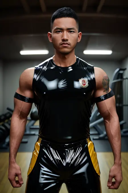 positive prompt - masterpiece, best quality, highres, realistic, handsome, photogenic, masculine, (big muscles),lora:syahnkV4-08:0.5, syahnk as ((dark tanned)) [prompt]