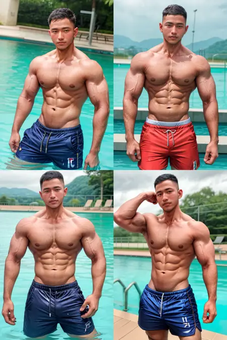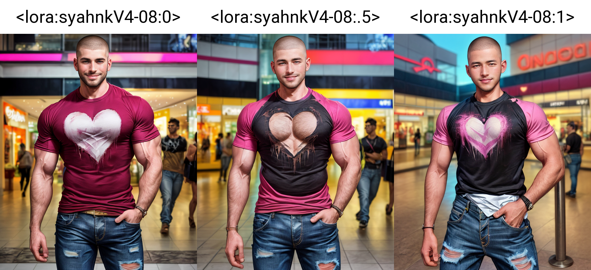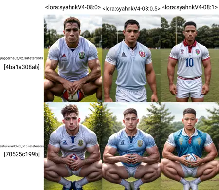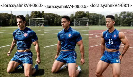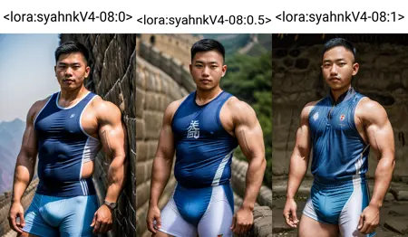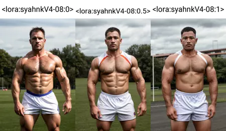 positive prompt - masterpiece, best quality, highres, realistic, handsome, photogenic, masculine, (big muscles),lora:syahnkV4-08:0.5, syahnk as ((dark tanned)) [prompt]