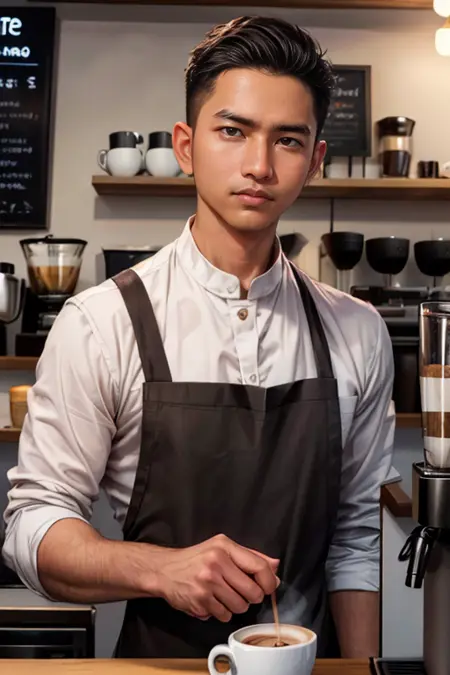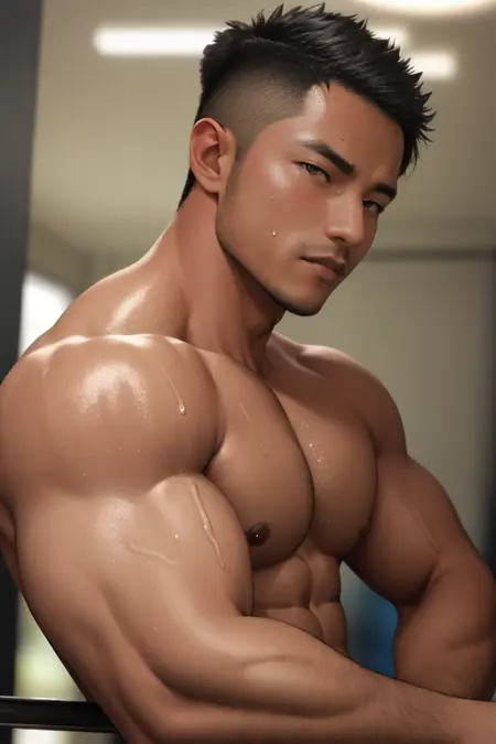 正面提示(positive prompt) - masterpiece, best quality, highres, realistic, handsome, photogenic, masculine, (big muscles),lora:syahnkV4-08:0.5, syahnk as ((dark tanned)) [prompt]
