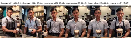 适用于约20岁身材偏瘦的年轻男性,强度较高,可能需要调整负面提示(neg prompt)和LoRA强度以获得理想效果,推荐使用Adetailer或使用inpaint方式以达到理想结果。