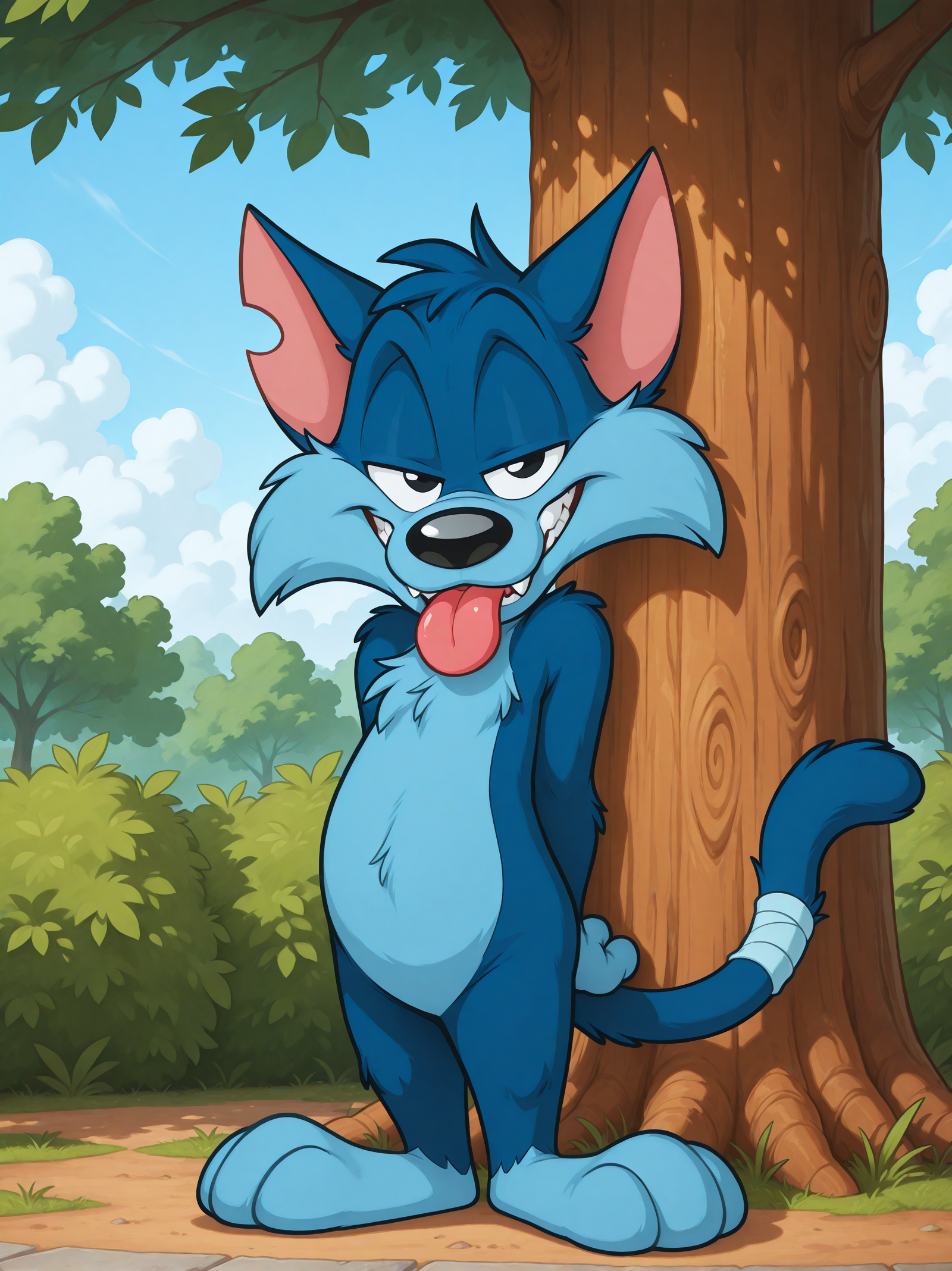 推奨強化タグ: 青い毛皮、黒い目、黒い鼻、青い包帯を巻いた尾