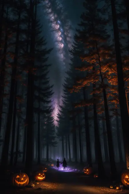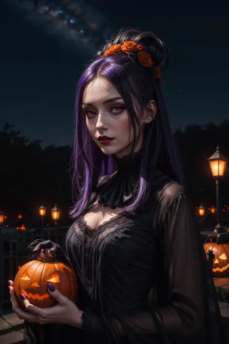 Hall0w33n - black, purple, and orange color scheme with a tendency to add pumpkins everywhere