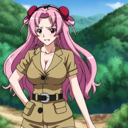 • 徒步装触发词:MiyuriHiking, 1girl, 粉色头发,大乳房,乳沟,过膝袜,长发,双发髻,发髻,短裤,腰带,发髻罩,制服,牛仔镜头