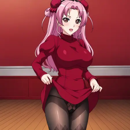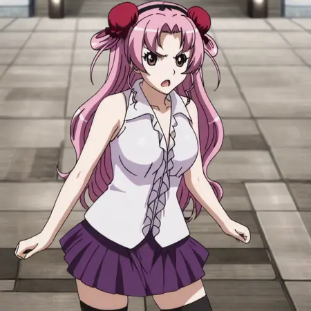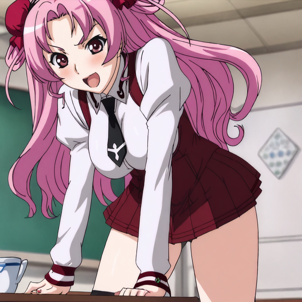 • 触发词:Miyuri, 1girl, 粉色头发,裙子,校服,双发髻,大乳房,发髻,领带,粉色眼睛,牛仔镜头