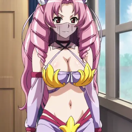 • 阿拉伯风格触发词:MiyuriArabian, 1girl, 大乳房,粉色头发,面纱,长发,乳沟,肚脐,腹部,红色眼睛,钻头发型,牛仔镜头