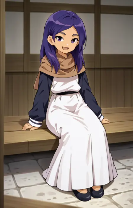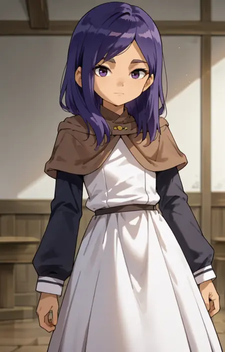 black sleeves, long sleeves, brown capelet, white dress, long dress