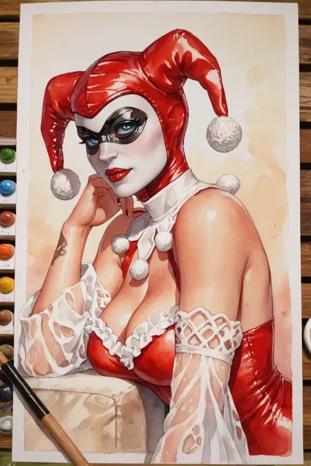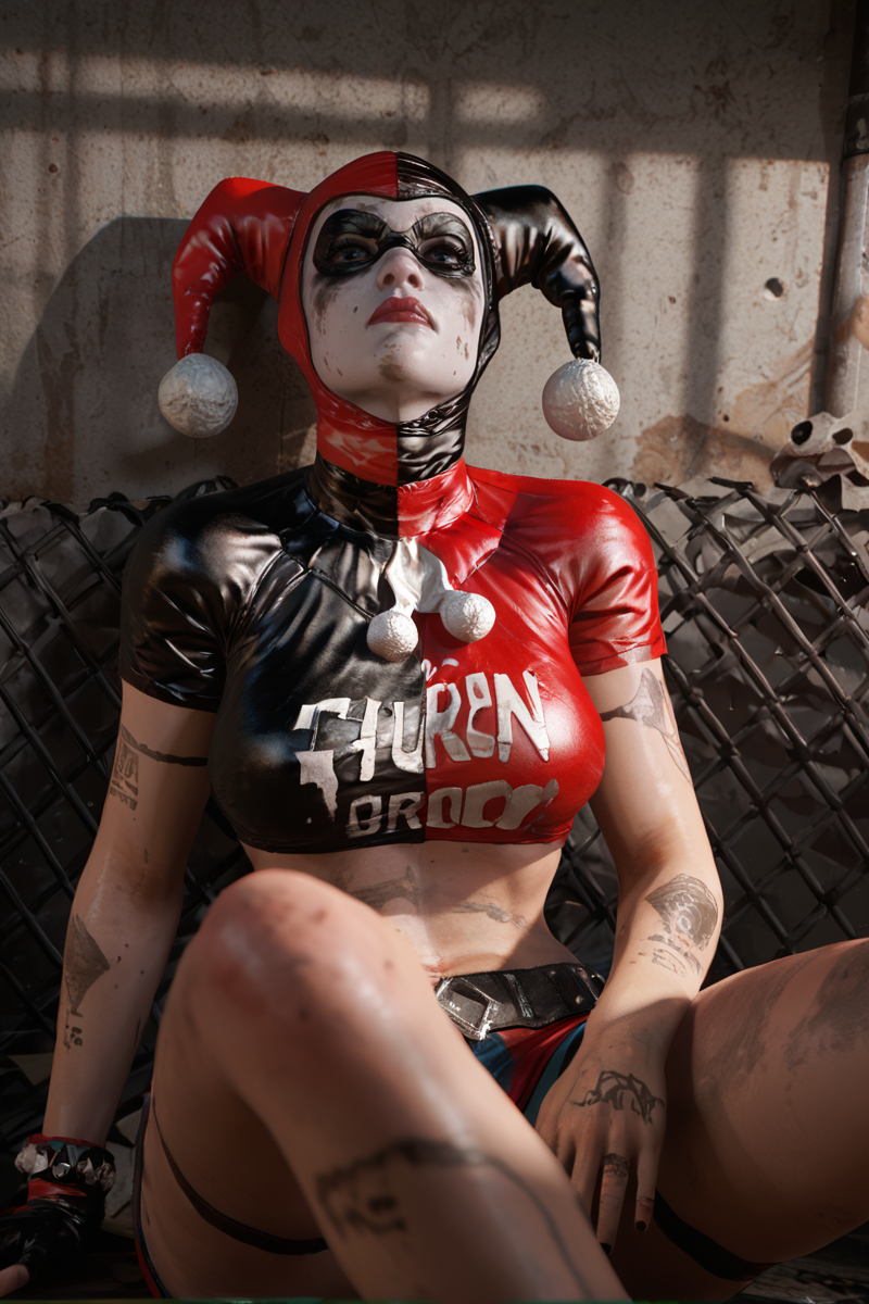 Harley Quinn -DC -semi-realistic comic anime style