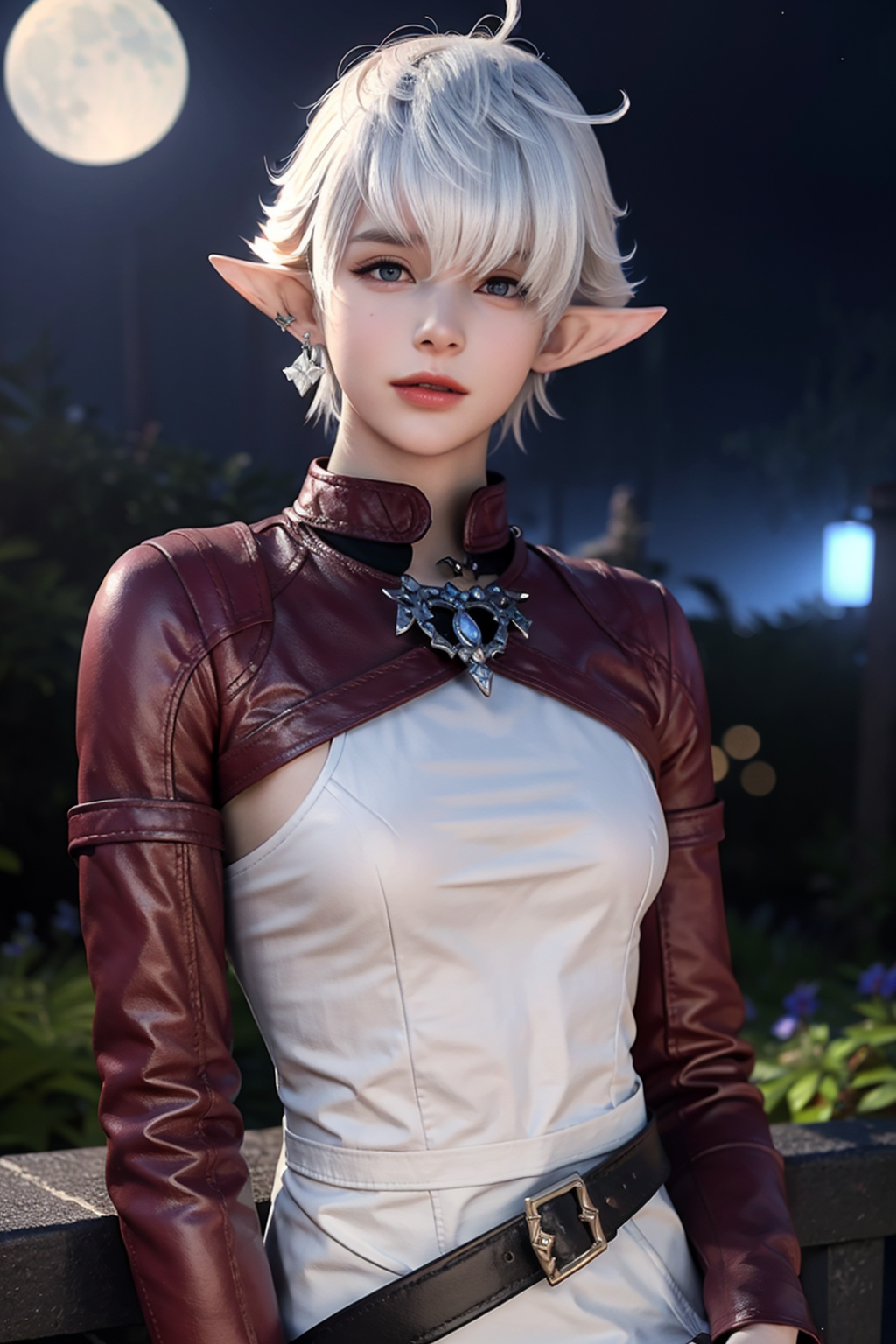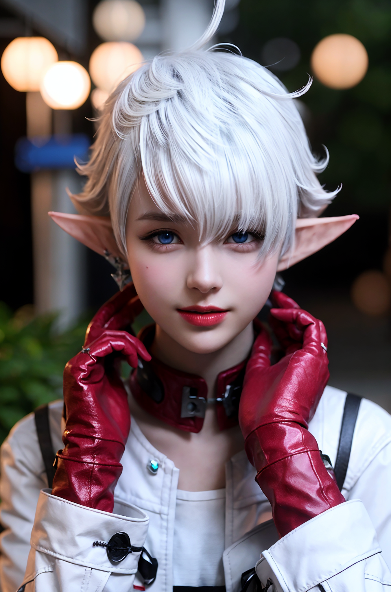 标签:白色头发,蓝色眼睛,红色夹克,尖耳朵