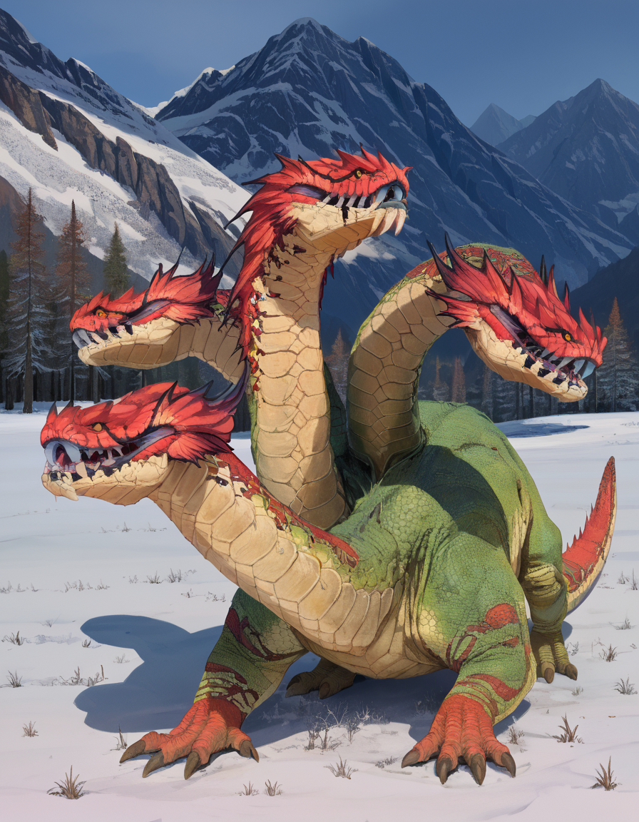 "The Hydra is a titanic beast of the mountains, whose ill-tempered and ravenous nature has proven the doom of many an unsuspecting morsel.