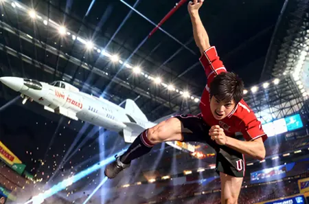 手臂和腿部动作非常夸张,以球为中心的视角,背景中会出现可爱的动物……