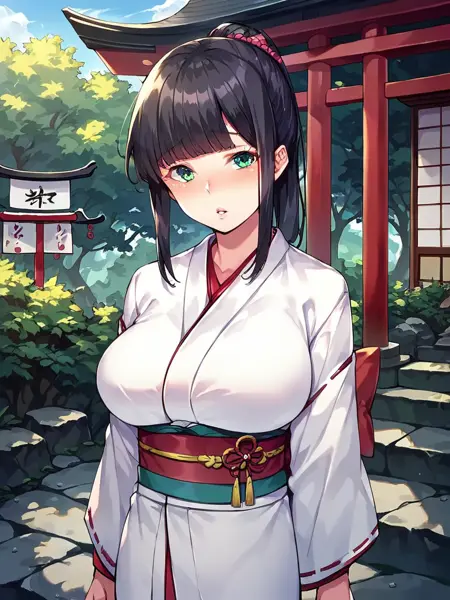 하츠후지 시즈쿠: hatsufuji shizuku, 긴 머리, 검은색 머리, 녹색 눈, 큰 가슴,