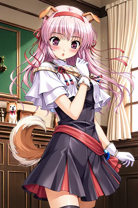 dog girl, dog ears, red hairband, dog tail,