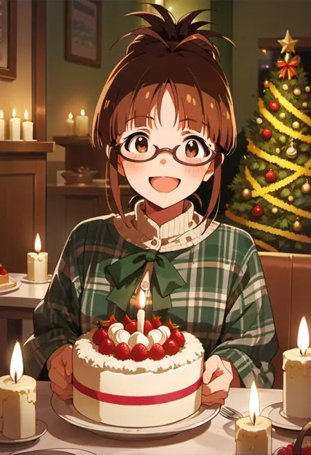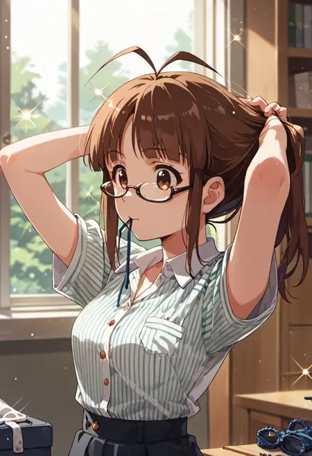 :秋月律子,棕色头发,眼镜,棕色眼睛