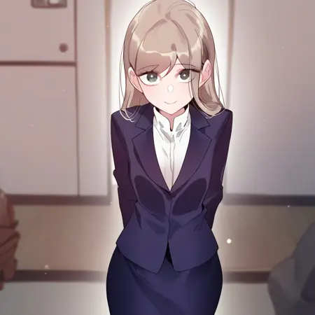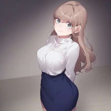 5b. ((正式,高领白色衬衫,性感蓝色铅笔裙,性感白色内裤,)) + 性感白色文胸