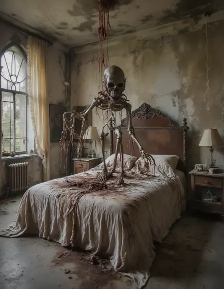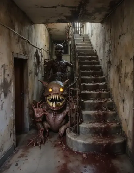大多数训练图像中并未包含人物(毕竟都是废弃场所),我注意到当人为添加人物时,容易出现扭曲或变形。我不确定这是否能通过调整训练设置来改善,但这是未来版本需要优化的点。不过,这种效果确实能产生一些怪诞的画面。为增加趣味性,可将此 LoRA 与我的 维多利亚哥特恐怖 LoRA 结合使用。