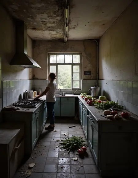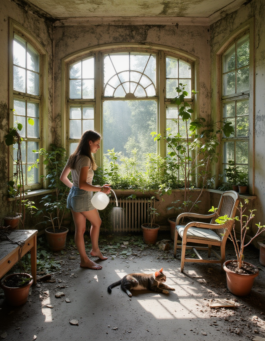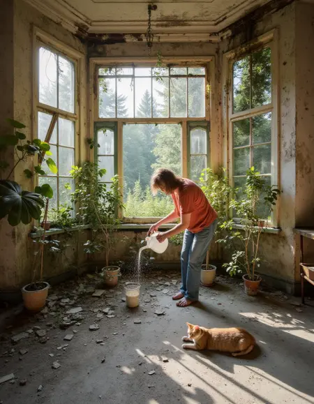 “废弃内部”专注于各种房间和地点的内部场景。通过在提示中添加该 LoRA 和触发词,你可立即将原本普通的场所转变为衰败荒废、昔日辉煌已不复存在的废墟:墙壁剥落、天花板坍塌,地面覆盖着瓦砾和垃圾。如需更多都市废墟风格,可查看 废弃公园 和 废弃街道。