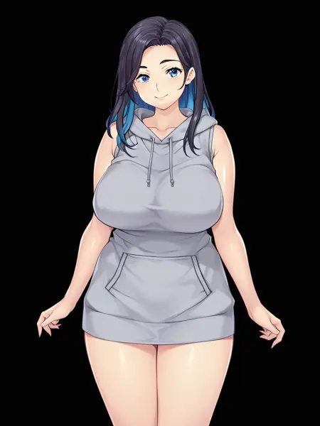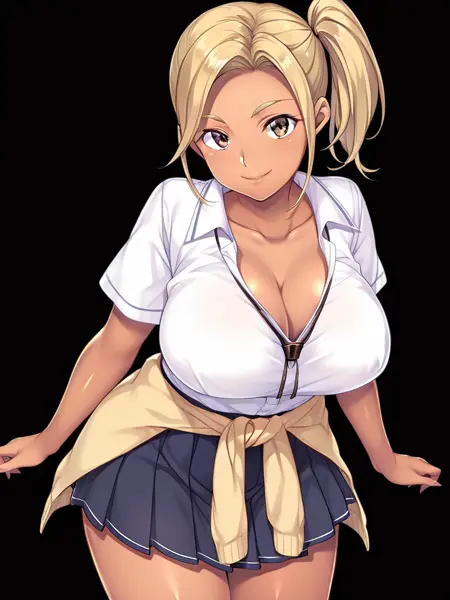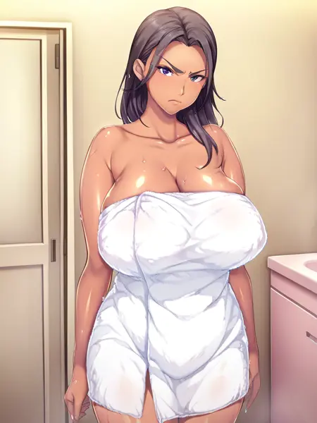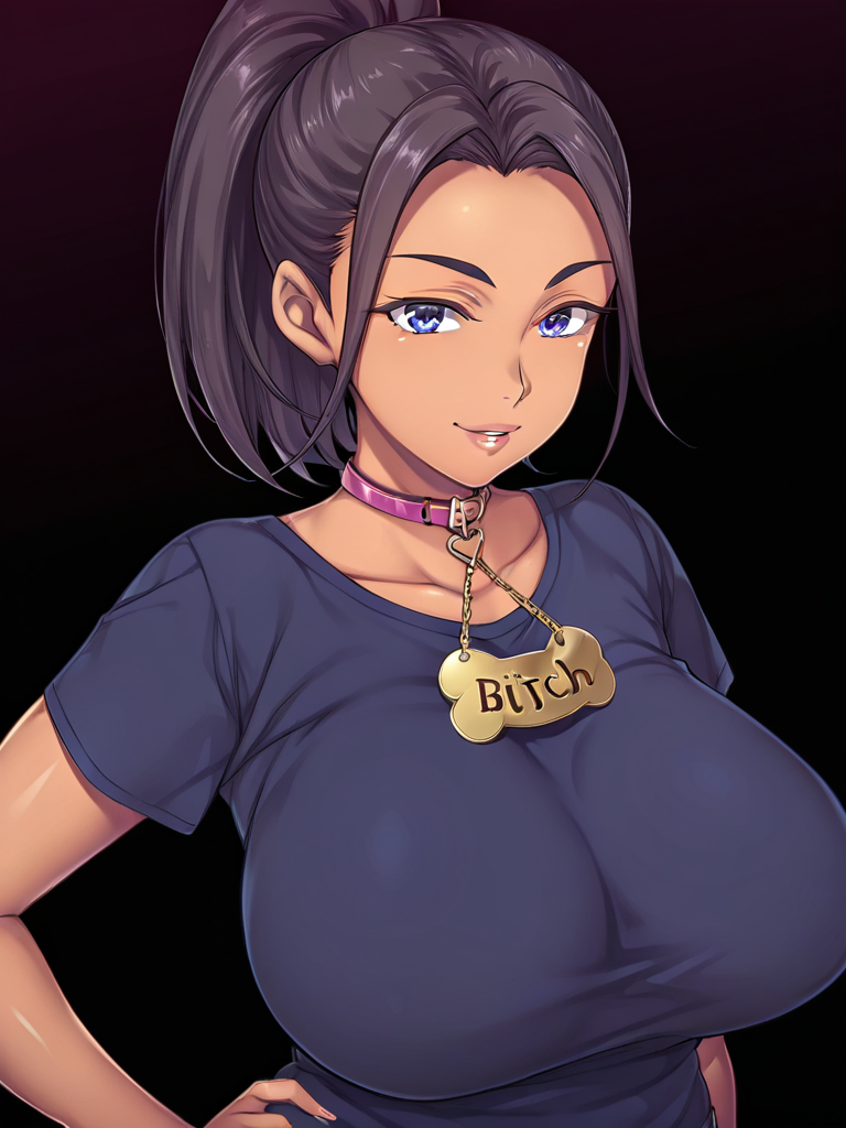 工藤良子: kudou ryouko,深色皮肤女性,成熟女性,巨乳,蓝眼睛,黑发,马尾