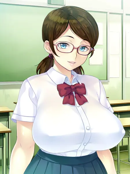白崎美优: shirasaki ayano,棕发,蓝眼睛,刘海飘动,低双马尾,巨乳,戴眼镜