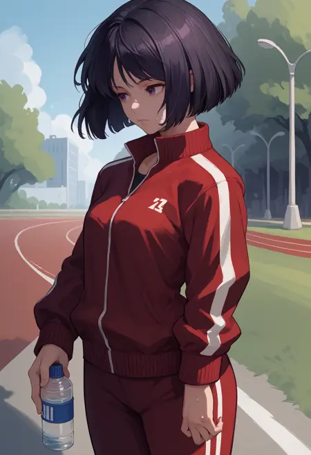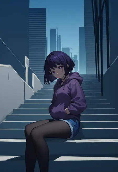 트리거 + 외모: sail0rs4turn, 단발, 검은 머리, 밥컷, 보라색 눈