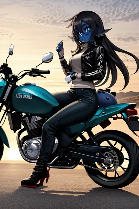 Triggers are Smouldie mainly, then the rest ; 1girl, blue skin, masterpiece, best quality, short hair, (tail)